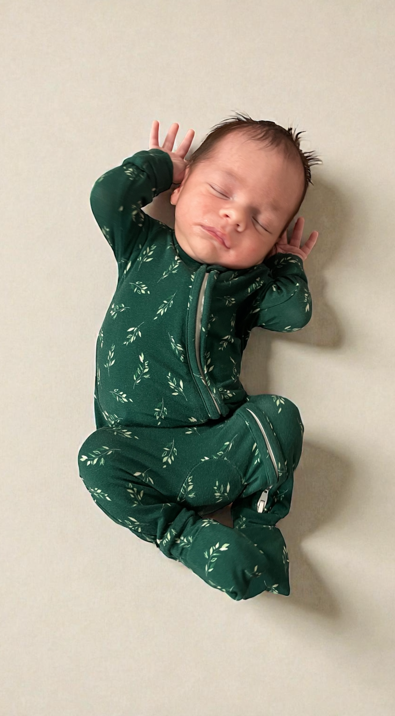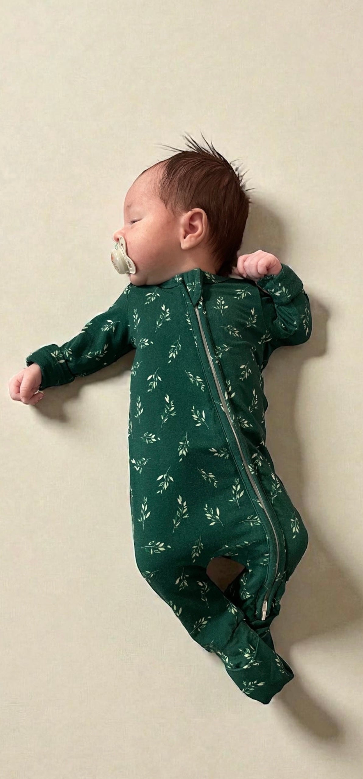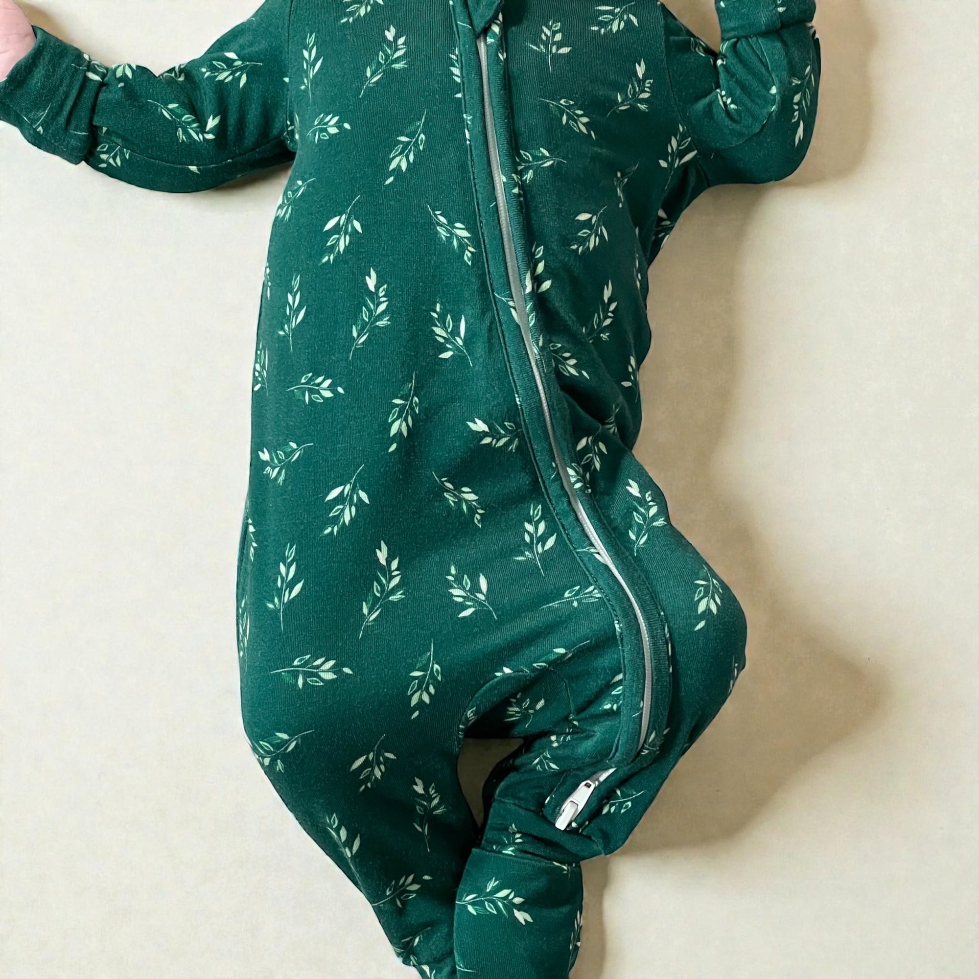 Baby Bamboo Zippered Onesie (Botanical Leaves)