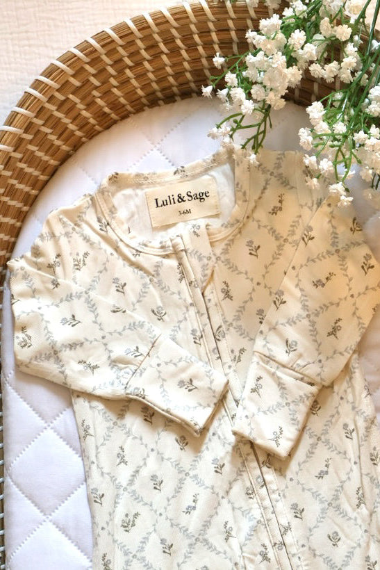 Baby Bamboo Zippered Onesie (Vintage Floral)